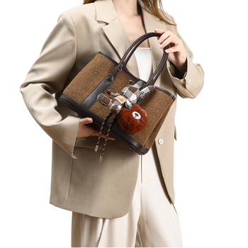 กระเป๋าแฟชั่นแบบใหม่สำหรับฤดูใบไม้ร่วงฤดูหนาวผ้าทอระดับไฮเอนด์กระเป๋าสะพายข้างทรงบอสตันหมอนสายเดี่ยวเปิดปิดโพลีเอสเตอร์ซับใน